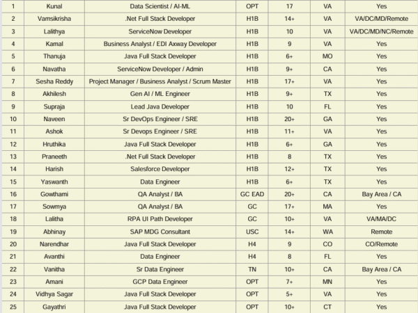 US jobs, C2C Hotlists, vendor list and Staffing News