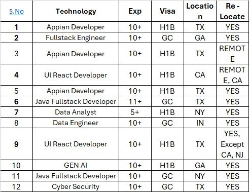 Hi Connections, I hope you are doing well. Looking forward to doing more business with you. I have some experienced consultants with different technologies. Please …