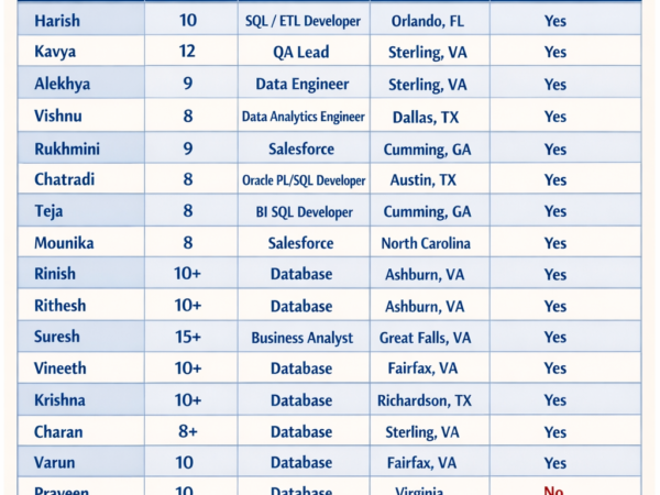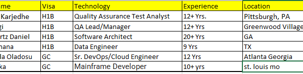 Hello Recruiters, I have excellent candidates who are looking for new opportunities on C2C. who can fulfill your client’s requirements. I’ve included the details of …