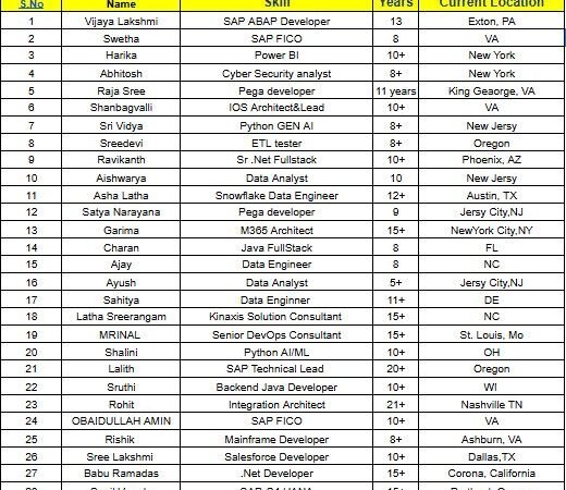 Hi Network đź‘‹ Sharing my latest Hotlist of available candidates (attached in the screenshot). All profiles are actively looking highly skilled IT consultants available for …