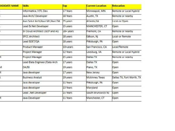 Hi Everyone, Hope you are doing great. I have a pool of extraordinary specialized consultants with genuine experience on my bench who are looking for …