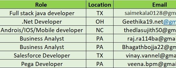 Hi, Greetings of the day, Please find the below Hot-List and share with me your daily C2C requirements to hsheik@codewaveit.com or you can reach on +1 (717) …