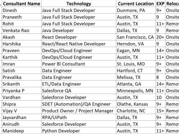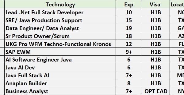 Hello Connections! I’m Siva from Care IT Services Inc. We’ve been in the IT industry since 2010, working primarily with W2 H1B, USC, GC, and H4 EAD consultants. …