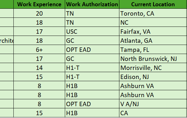 Hi, Hope you’re doing well. Greetings from Wise Equation Solution Inc….!! Please find the list of available consultants for your client requirements. We provide our …