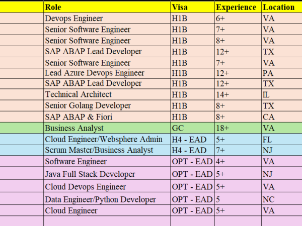 Good morning, if you have any C2C requirements, please reach out to me via email: meenakshi@solvency.us Name Role Visa Experience Location Relocation Kiran Ramisetti Devops …