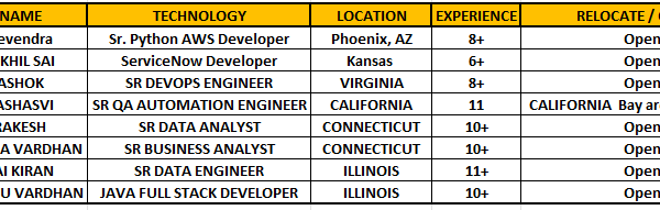 Hello Professionals, Greetings!! Please let me know if you have contract openings for below consultants. Feel free to reach out for further discussions or more …