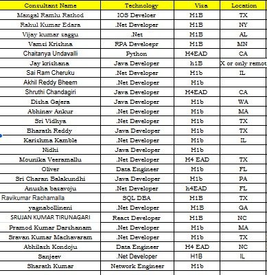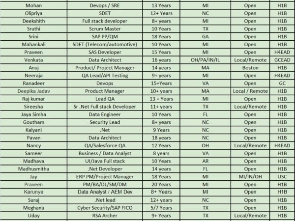 HOTLIST ALERT – Available Consultants (USA) Hi, Hope you are doing well! Please find below our C2C-only hotlist, segregated by technology for your easy review. All consultants are …