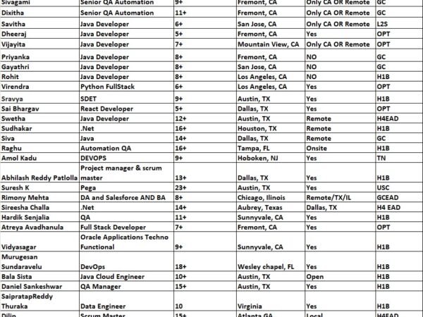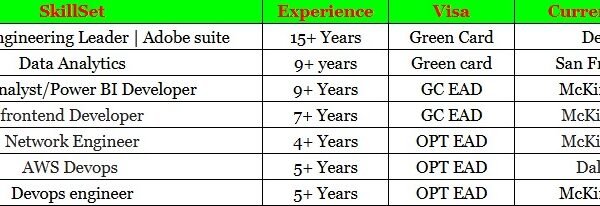 Hello Connections! I’m Siva from Care IT Services Inc. We’ve been in the IT industry since 2010, working primarily with W2 H1B, USC, GC, and H4 EAD consultants. …