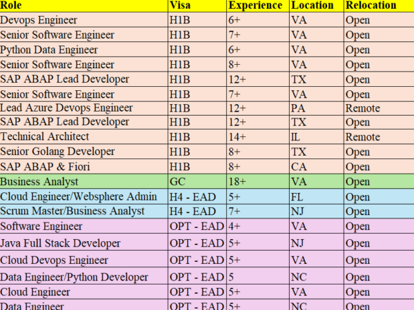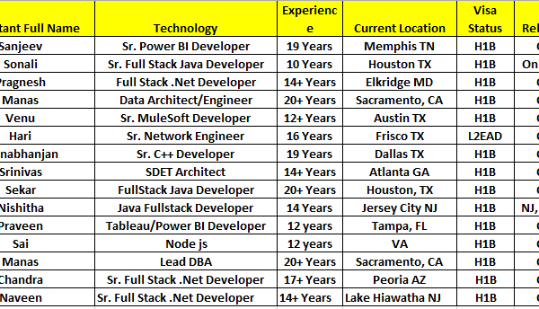 US jobs, C2C Hotlists, vendor list and Staffing News