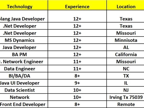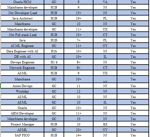 Hi, Hope you’re doing well. This is Ashok from Analytical Data Solutions LLC. We have a strong pool of qualified consultants available on C2C and C2H across …