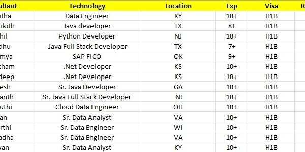 Hello, Hope you’re doing great! I’m sharing our latest roster of highly experienced consultants who are immediately available for new C2C opportunities and open to …