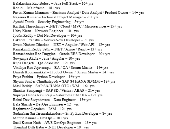 Good Morning Network! Happy Tuesday #USITRecruiters, #HiringManagers & #TalentAcquisition(Recruiters ONLY)Teams! INFYLOGY Corp – Active Bench | Nov 2025 Here’s a snapshot of our Active Bench …