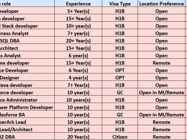 Hello Recruiters, Hope you are doing good! Please find attached updated hotlist of our active bench consultants. Kindly share if you come across any suitable …