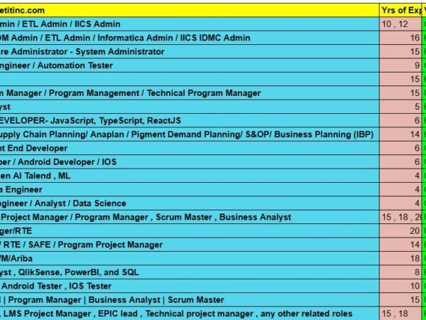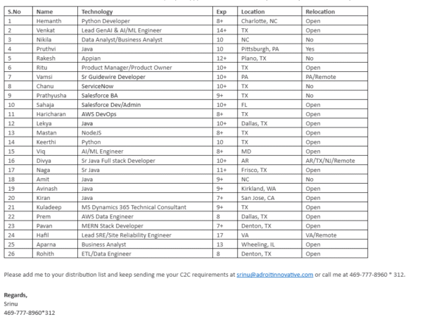 Hi Recruiters / Hiring manager, Please do keep me posted with your daily c2c requirements. Thanks & Regards, Shravan Team Lead – Bench Sales shravan@unisoftllc.com …