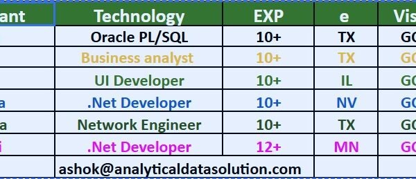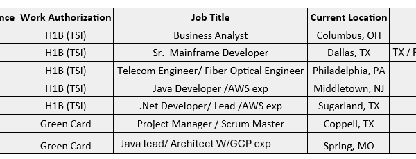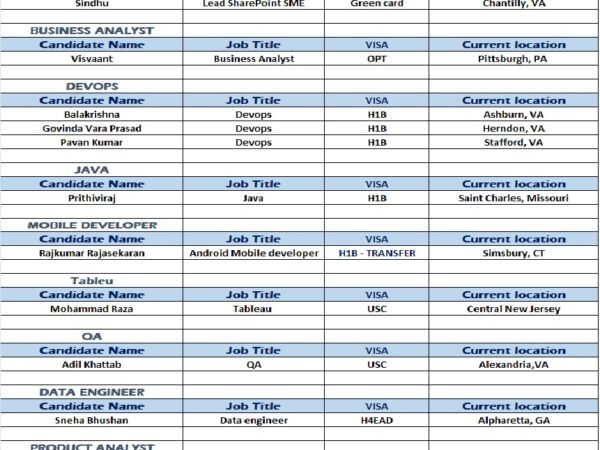 Hello Connections! I’m Siva from Care IT Services Inc. We’ve been in the IT industry since 2010, working primarily with W2 H1B, USC, GC, and H4 EAD consultants. …