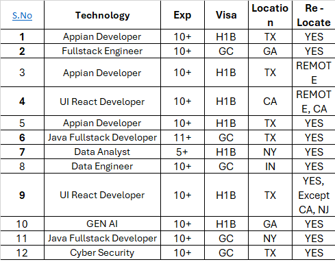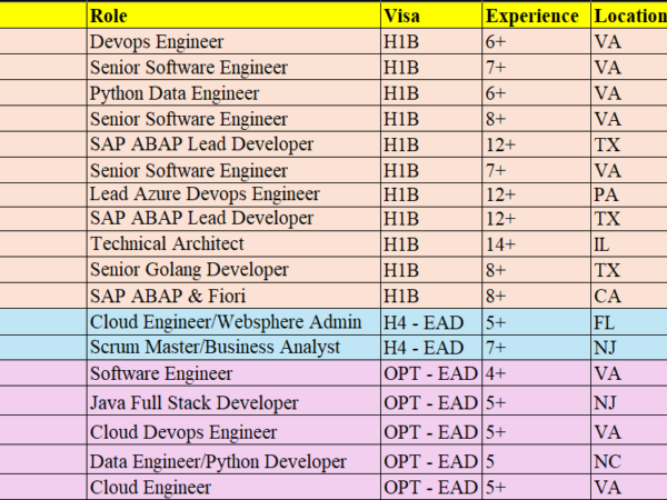 Hello Connections! I’m Siva from Care IT Services Inc. We’ve been in the IT industry since 2010, working primarily with W2 H1B, USC, GC, and H4 EAD consultants. …