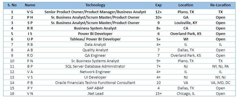 Hello, Greetings! This is regarding the Updated Hot-List of “Technocraft Solutions” consultants, who are actively looking for a new contract opportunity; please let me know …