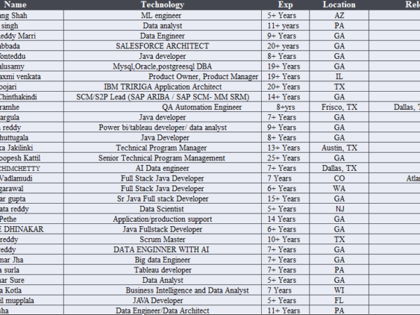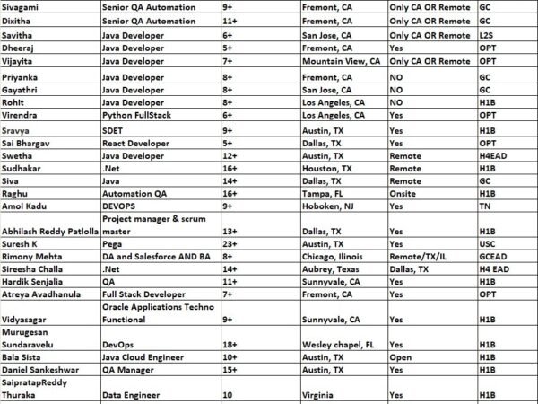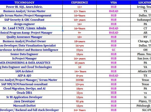 Hello Connections! I’m Siva from Care IT Services Inc. We’ve been in the IT industry since 2010, working primarily with W2 H1B, USC, GC, and H4 EAD consultants. …