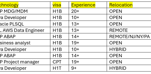 Hi Everyone, Hope you are doing great. I have a pool of extraordinary specialized consultants with genuine experience on my bench who are looking for …