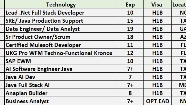 Hello Connections! I’m Siva from Care IT Services Inc. We’ve been in the IT industry since 2010, working primarily with W2 H1B, USC, GC, and H4 EAD consultants. …