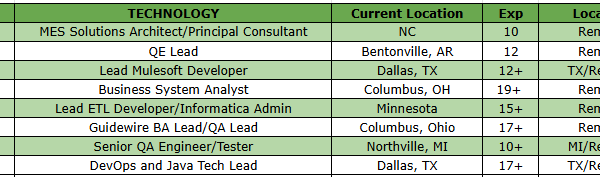 Hi, Hope you’re doing well. Greetings from Wise Equation Solution Inc….!! Please find the list of available consultants for your client requirements. We provide our …