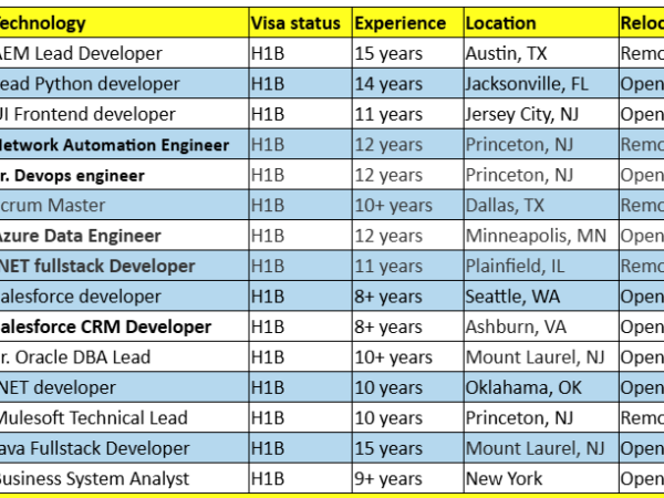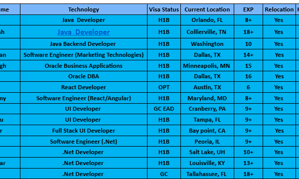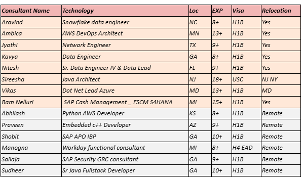 John KaryOctober 2, 2024October 1, 2024Updated hotlist of consultants available for C2C Jobs requirements hotlist