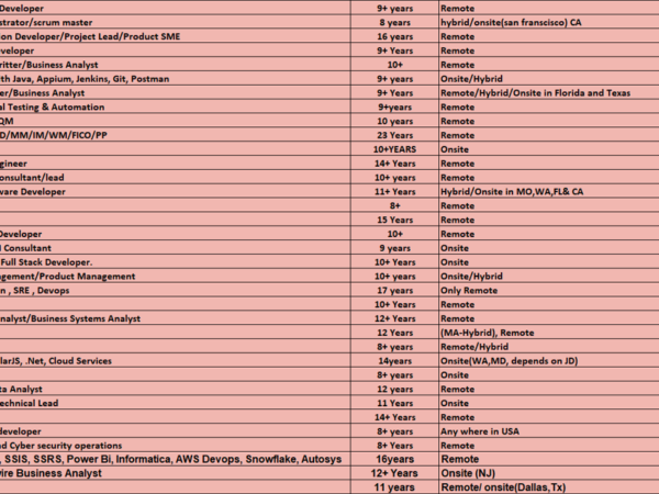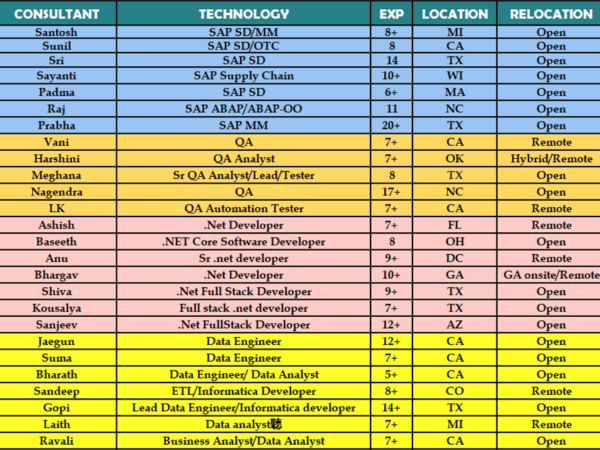 John KaryMarch 14, 2024March 14, 2024Oracle DBA Jobs C2C HOTLIST, Dot NET Developer, Salesforcer Developer, SAP ABAP Quick overview C2C HOTLIST