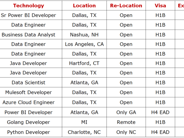 Hello Connections! I’m Siva from Care IT Services Inc. We’ve been in the IT industry since 2010, working primarily with W2 H1B, USC, GC, and H4 EAD consultants. …