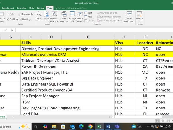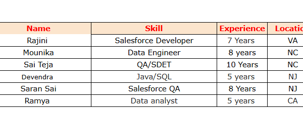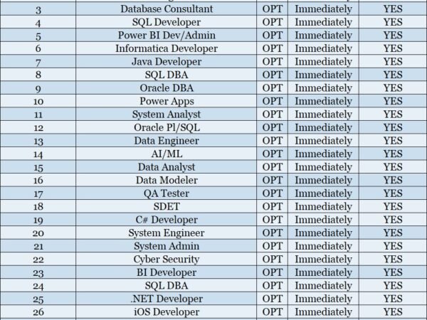 Hello, Good Morning ! Hope you are doing great! We are actively seeking new opportunities for our talented consultants who are currently available. These professionals …