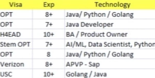 Hi Connections, I hope you are doing well. Looking forward to doing more business with you. I have some experienced consultants with different technologies. Please …