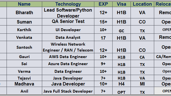 Hello Connections! I’m Siva from Care IT Services Inc. We’ve been in the IT industry since 2010, working primarily with W2 H1B, USC, GC, and H4 EAD consultants. …