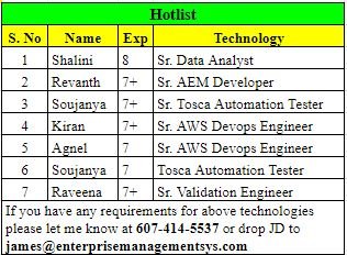 Sonali GzbDecember 15, 2022December 14, 2022Updated Hotlist!!!!!!!!! Please find Updated Hotlist and let me if you have any suitable requirements!!!! Thanks and regards james@enterprisemanagementsys.com 607-414-5537
