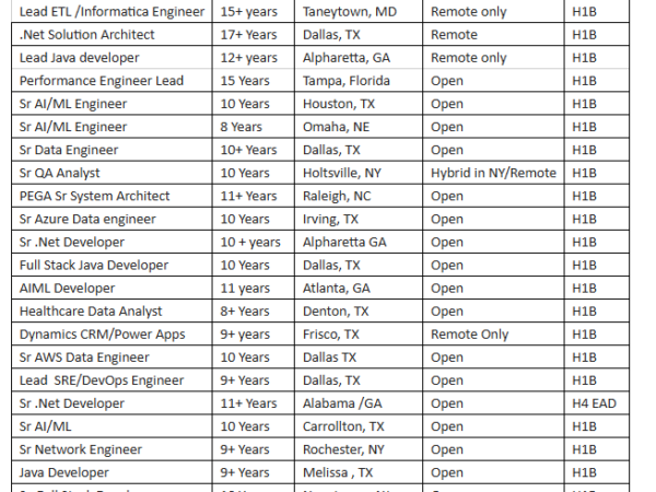 Hello Recruiters!!! Hope you are doing well. Greetings from Meridiansoft, Inc. Kindly find the below top-notch availability list of resources, who are available to take on new projects. Please let me …