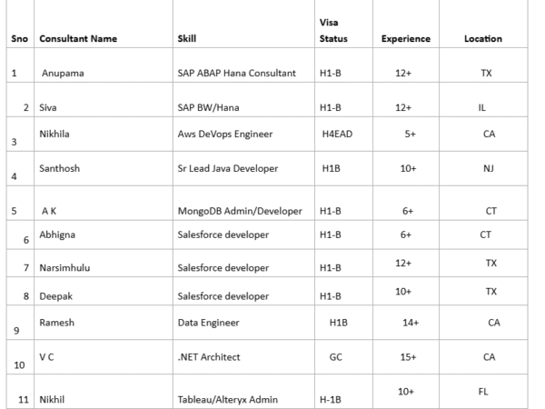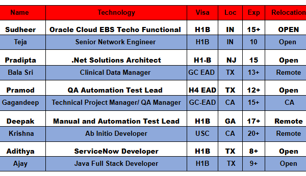 Hi, I hope you’re having a wonderful day!!!! Please share STRONG resumes with below mentioned mandatory skillset only Send the resume along with the skill …