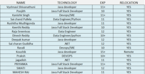 Please find my hotlist below and revert me back if any of the profiles matches your requirements. All the consultants are looking for C2C positions.